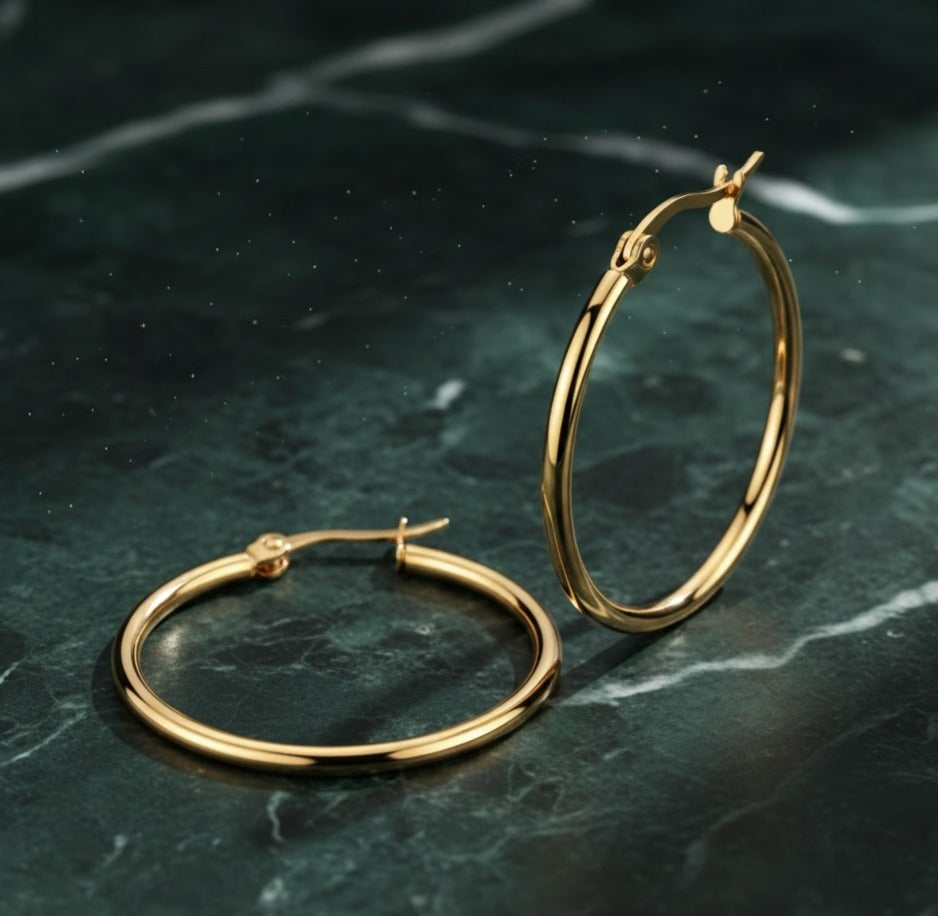 Uppgradera din vardagslook med dessa tidlösa hoops från Lequnex. Med en stilren design och en lyxig finish är dessa örhängen skapade för att vara din absoluta favorit i smyckesskrinet. De erbjuder den perfekta balansen mellan minimalistisk estetik och en kvalitet som tål livets alla äventyr.