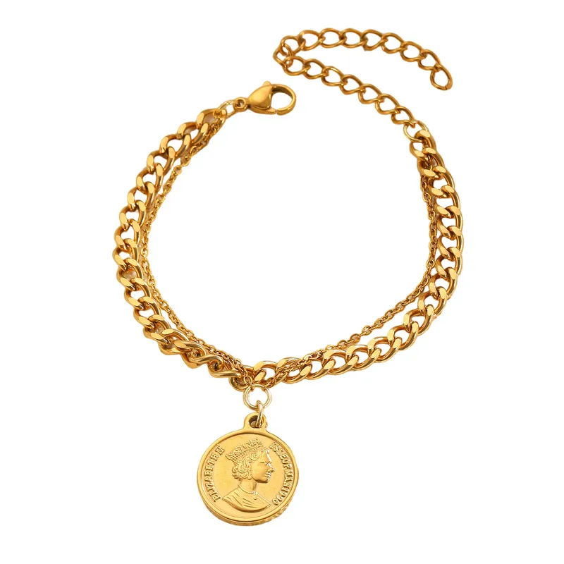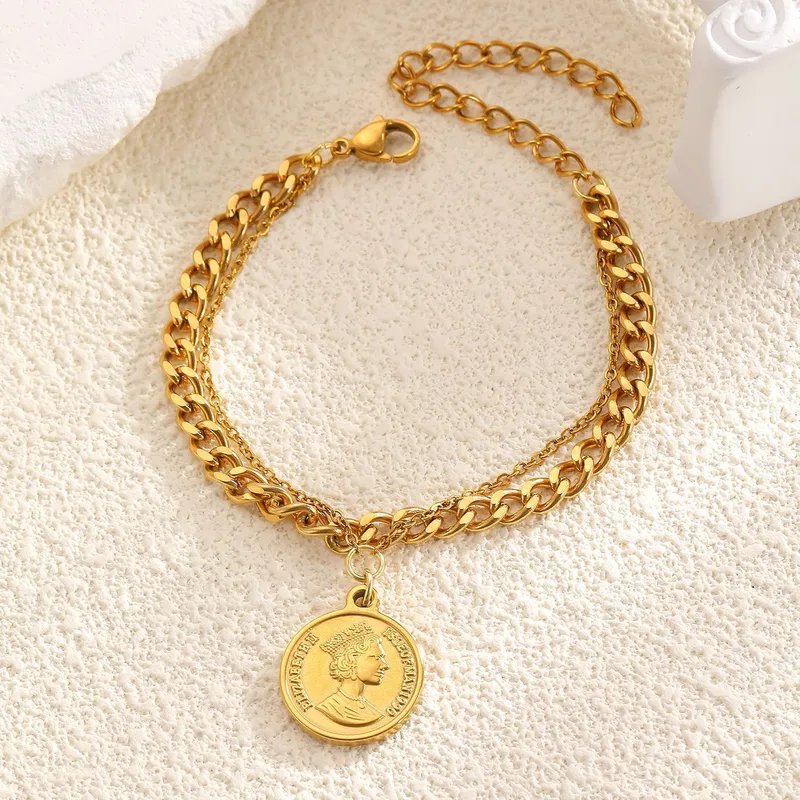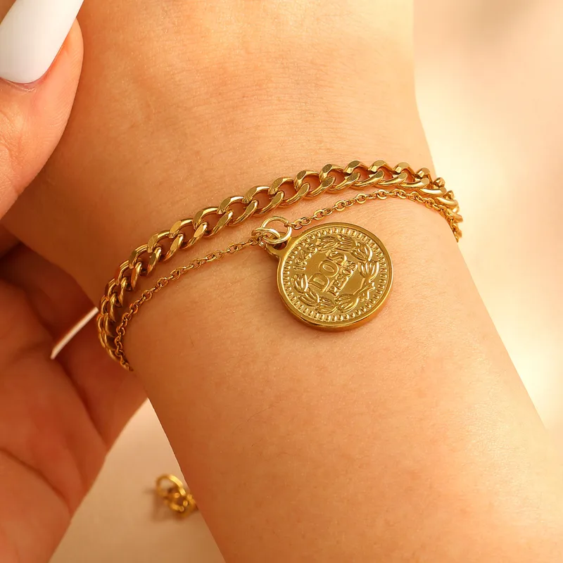 Ett sofistikerat och tidlöst smycke som kombinerar antik estetik med modern hållbarhet. Detta dubbellager-armband ger en färdig "stacking"-look med minimal ansträngning och en lyxig finish i äkta 18K guld.