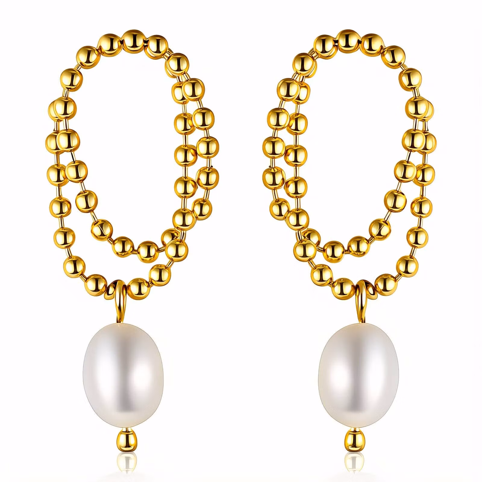 Ge din look en touch av naturlig lyx med dessa fantastiska pärlörhängen från Lequnex. Genom att kombinera den tidlösa skönheten hos äkta sötvattenspärlor med hållbarheten hos guldpläterat rostfritt stål, har vi skapat ett smycke som är lika unikt som du är. Perfekta för bröllop, festligheter eller när du vill sätta guldkant på vardagen.