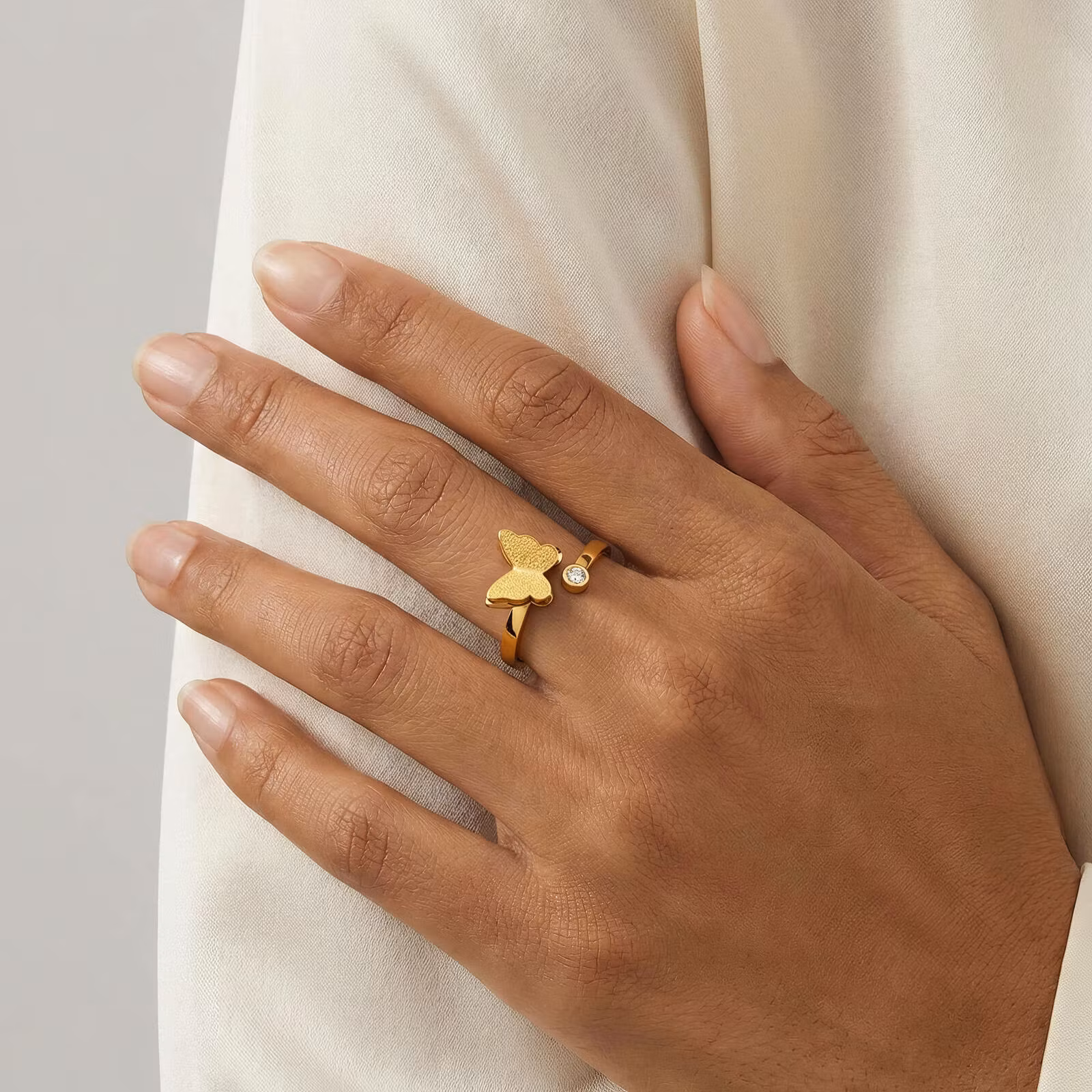 "Fjäril" Ring – 18K Guldpläterat Stål