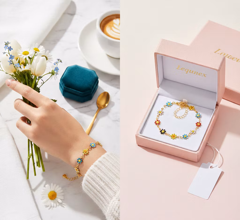 • Färg som aldrig bleknar: Blommorna är designade för att behålla sin lyster och armbandet oxiderar inte, vilket betyder noll risk för mörka fläckar på huden.