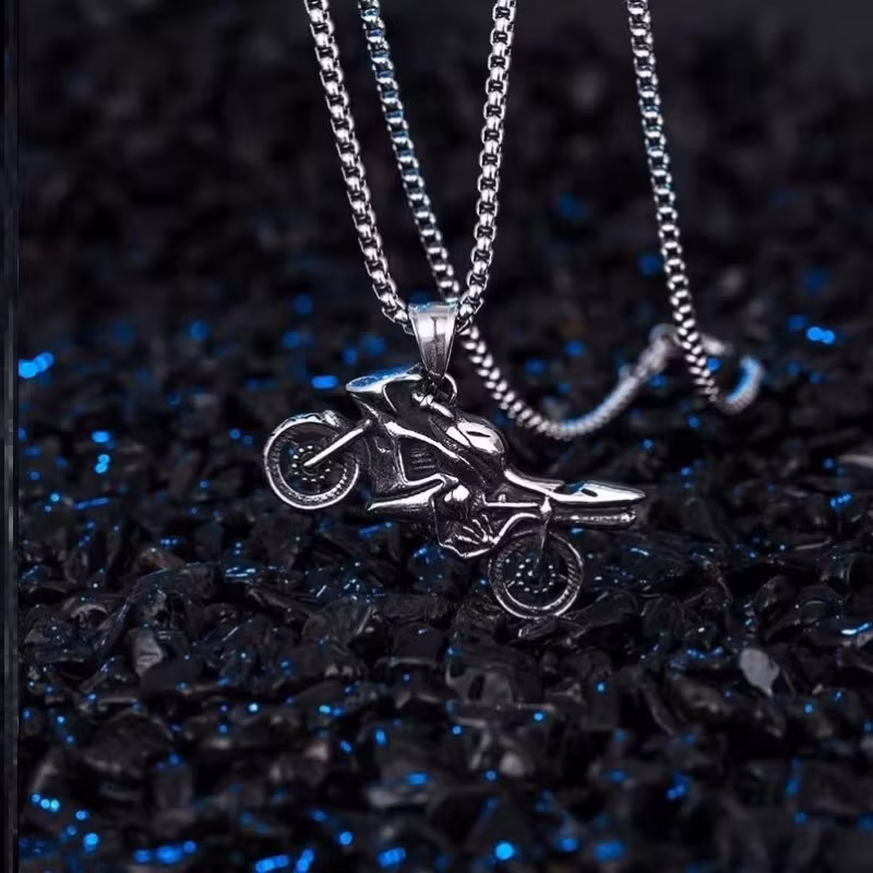 Känn friheten och kraften runt halsen. Detta detaljrika halsband är skapat för dig som älskar motorcyklar, fart och den råa "Biker-kulturen". Med en unik kombination av hållfasthet och precision är detta mer än bara en accessoar – det är ett uttryck för en livsstil.