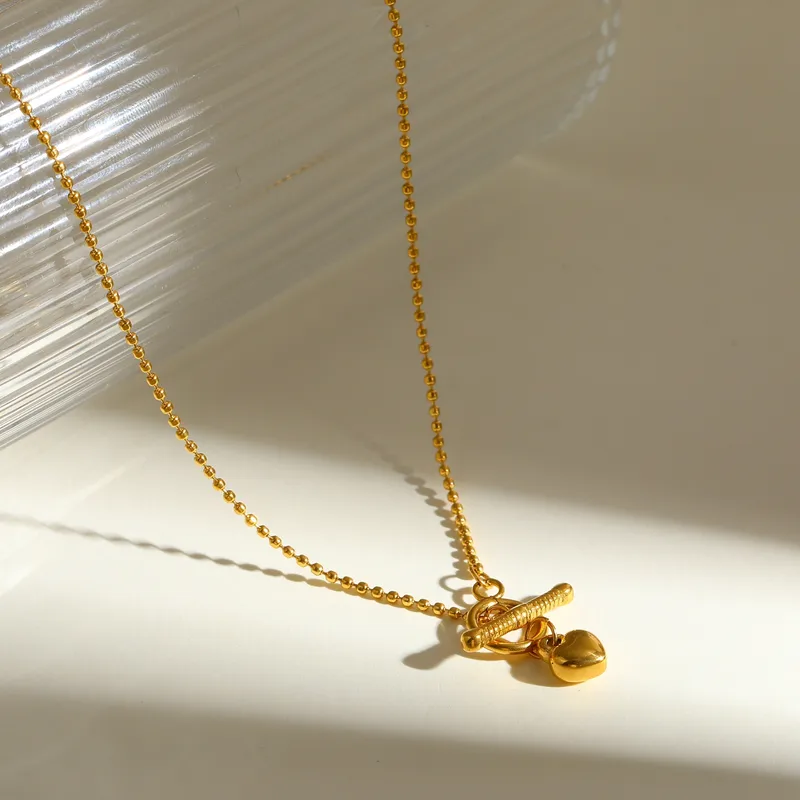Modern & Karaktäristisk Design: Halsbandet har en trendig kulkedja (Ball Chain) som möts i ett dekorativt OT-lås (Toggle Clasp). Låset är inte bara praktiskt utan fungerar som en snygg designdetalj på framsidan.